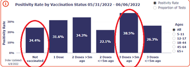 For how much longer is the FDA going to be allowed to ignore a year’s worth of signals not just indicating cataclysmic safety concerns but negative efficacy – and downright perpetuation – of the virus? Just look at this week’s Walgreens COVID-19 testing index, and you can once again see that higher positivity rates are associated with those with more shots, especially as time goes on.